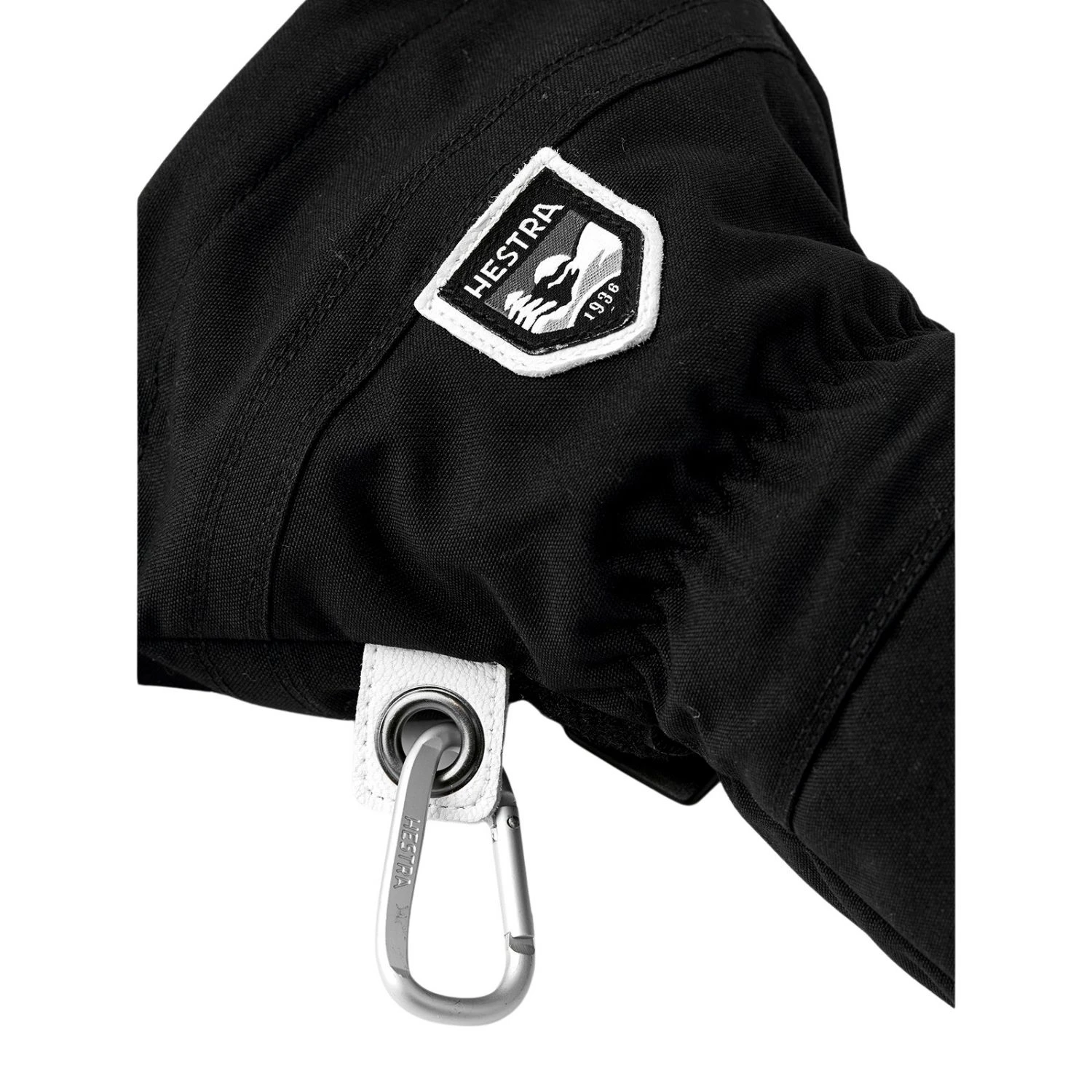 Outer material: Upper section made of windproof, waterproof and breathable HESTRA Triton three-layer polyamide fabric. Proofed Army Leather-goat leather palm.